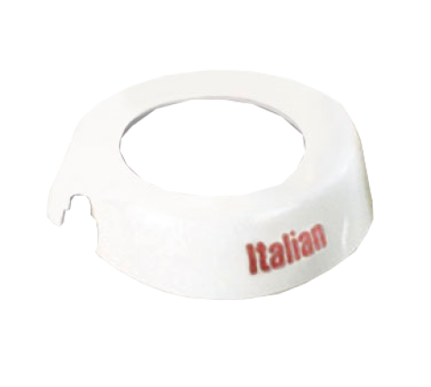 Dispenser ID Collar, "Italian", fits model numbers 483 & 484, white dishwasher safe, plastic collar, maroon print, Made in USA (1 each minimum order)