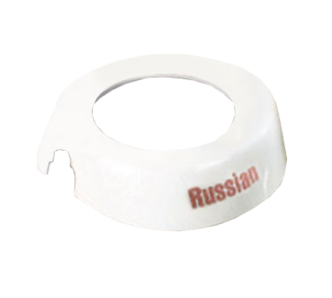Dispenser ID Collar, "Russian", fits model numbers 483 & 484, white dishwasher safe, plastic collar, maroon print, Made in USA (1 each minimum order)