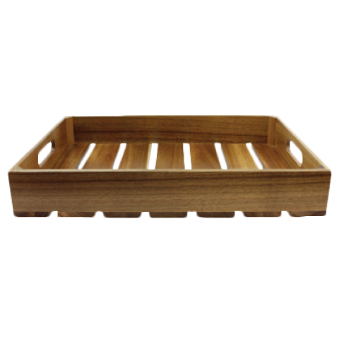 Gastro Serving/Display Crate, full size, 20-3/4" x 12-3/4" x 4-1/4", fits 1/1 GN pan, wipe clean with damp cloth only, acacia wood, brown (1 each minimum order)