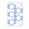 Hot Food Template, 13-1/2" x 21-5/8" (fits well size: 11-7/8" x 19-7/8"), cuts fit (5) CW2052, dishwasher safe, 16 gauge stainless steel, embossed 2 finish (1 each minimum order)