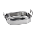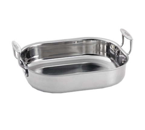 Roasting Pan, 3-1/2 qt., 11-1/2" x 9-1/2" x 2-1/2", lid not included, loop handles, tri-ply, safe for stove top, hot plate, gas, steam, induction and oven safe up to 500°F, dishwasher safe, coated aluminum & stainless steel, brushed finish, NSF (1 each minimum order)