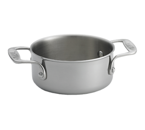Induction Mini Casserole, 16 oz., 5-1/8" dia. x 2-1/4", with 2 handles, tri-ply, safe for stove top, hot plate, steam, induction, and oven safe up to 500°F, dishwasher safe, coated aluminum & stainless steel, NSF (1 each minimum order)
