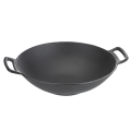 Wok, 6 qt., 14" dia. x 3-5/8", (17-1/2" O.A.L) round, with 2 handles, pre-seasoned, hand wash only, induction ready, cast iron (1 each minimum order)