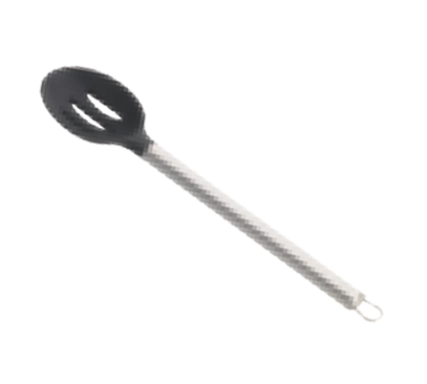 Serving Spoon, 13"Long, slotted, stainless steel handle, silicone head, black (1 each minimum order)