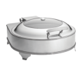 Electric Chafer Dish with Stand, 6 qt. (6-1/2 qt. capacity), 20-1/2" x 18-1/2" x 13", round, drop-in, slow-close hinged cover with viewing window, condensation catch, steam vent, steam pan, water basin, comes with 700 watt electric heater (CW30157), dishwasher safe, 2.0 mm polished stainless steel frame (1 each minimum order)