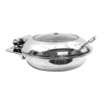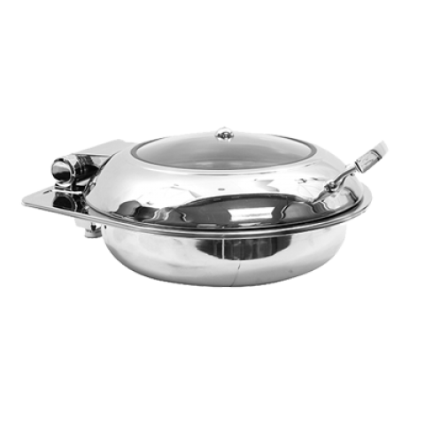Induction Chafer Dish, 6 qt. (6-1/2 qt. filled capacity), 17-1/4" dia. x 19-1/4" x 7-3/4"H, full size, round, slow-close hinged cover with viewing window, condensation catch, steam vent, steam pan, water basin, dishwasher safe, polished stainless steel finish, fits CW40177STAND (1 each minimum order) (electric induction cook-top sold separately)