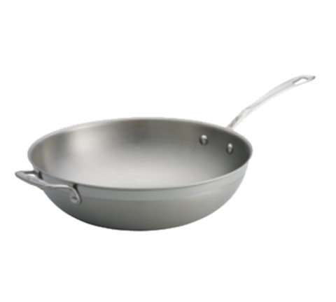 Induction Wok, 5 qt., 11-3/4" dia. x 3-1/4", round, with long handle & helper handle, tri-ply, safe for stove top, hot plate, gas, steam, induction and oven use, dishwasher safe, coated aluminum & stainless steel, NSF (1 each minimum order)