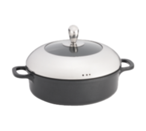 Casserole Dish, 3 qt., 10" dia. x 3", round, lid included, cast handles, safe for stove top, hot plate, gas, steam, induction and oven use, heat safe up to 450°, dishwasher safe, non-stick interior coating, high temperature exterior coating, die-cast aluminum (1 each minimum order)