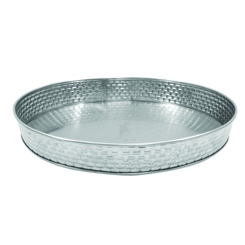 Brickhouse Collection™ Serving Platter, 8-1/8" dia. x 1-5/8"H, round, brick pattern texture, dishwasher safe, stainless steel (1 each minimum order)