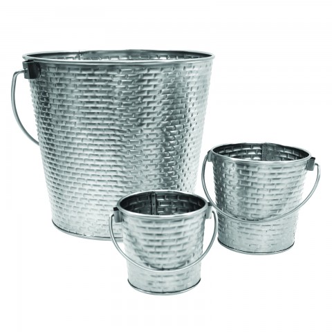 Brickhouse Collection™ Pail, 16-1/2 oz., 4" dia. x 3-3/4"H, round, with handle, dishwasher safe, brick pattern texture, stainless steel (1 each minimum order)