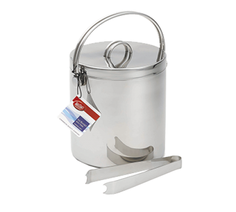 Cash & Carry Ice Bucket, 120 oz. capacity, 7" x 7" x 8-1/2", with tongs, double walled, dishwasher safe, stainless steel (display merchandise tag) (1 each minimum order)