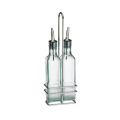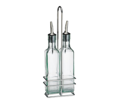 Cash & Carry Prima™ Set, (2) 8-1/2 oz. square green tint glass bottles (dishwasher safe), stainless steel pourer (hand wash only), chrome plated rack (hand wash only) (must be purchased in multiples of 6 sets)