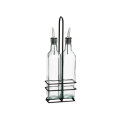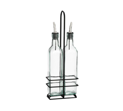 Cash & Carry Prima™ Set, (2) 16 oz. square green tint glass bottles (dishwasher safe), stainless steel pourer (hand wash only), black powder coated metal rack (hand wash only) (must be purchased in multiples of 6 sets)
