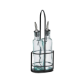 Cash & Carry Gemelli™ Bottle Set, (2) 8-1/2 oz. embracing green tint glass bottles (dishwasher safe), stainless steel pourer (hand wash only), black powder coated metal rack (hand wash only) (must be purchased in multiples of 6 sets)