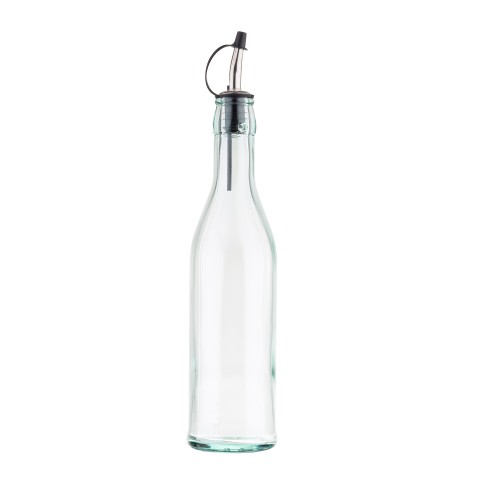 Bottle, 17 oz., tethered cap, stainless steel pourer, green tinted glass (must be purchased in multiples of 6 each)
