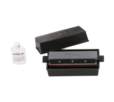 Three-Way Sharpener System, 8", (3) sharpening settings: coarse, medium & fine, includes honing oil, dishwasher safe (1 each minimum order)