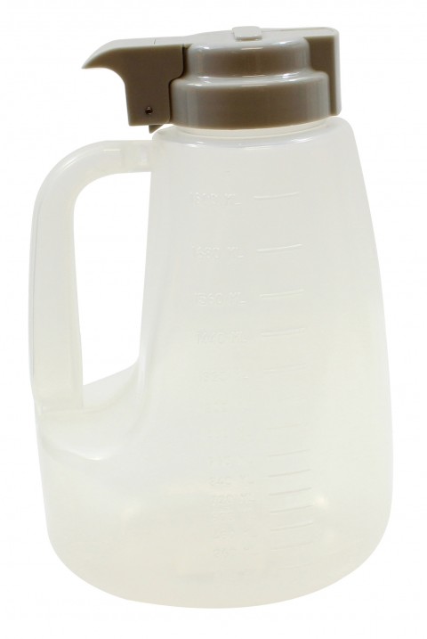Option™ Dispenser, 64 oz., 5-3/4" x 6-3/4" x 9", graduated markings, dishwasher safe, clarified polypropylene, plastic lid, gray, BPA free, made in USA (must be purchased in multiples of 6 each)