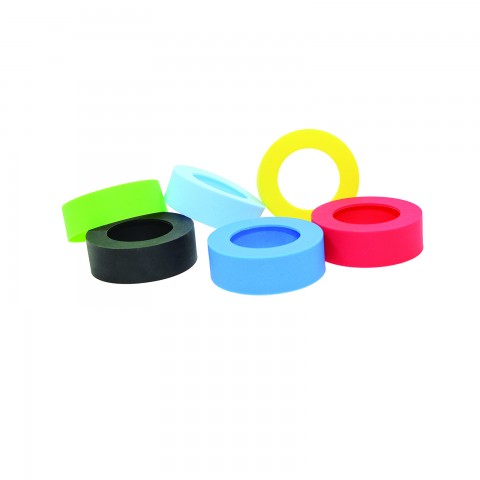 Cash & Carry Widemouth™ Sauce Bands, 63mm, fits all 63mm squeeze bottles (excludes 32 oz. bottles), dishwasher safe, silicone, assorted colors includes 2 of each: yellow, blue, red, black, light blue, & light green (12 per pack) (1 pack minimum order)