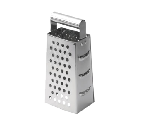 Grater, 3-1/4" x 4-1/4" x 9-1/2", tapered, rolled handle, dishwasher safe, stainless steel (1 each minimum order)