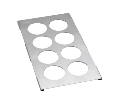 Squeeze Bottle Template, 8-hole, holds 12 & 16 oz. bottles (53 mm dia.), fits 1/3 size food pan, dishwasher safe, 18/8 stainless steel (1 each minimum order)