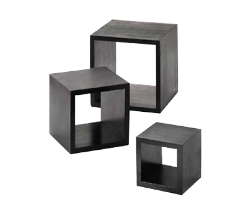 Barclay™ Riser Set, 3 piece, includes: (1) each, 5", 7", 9", squares, hand wash only, black, wood (1 set minimum order)