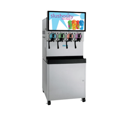 Frozen Carbonated Beverage Freezer, counter model, self-contained, four flavor, (4) 7 qt. freezing cylinders, indicator light/audible alarm, auto defrost, power saver, flow control, electric viscosity controls, air filter, lighted display, stainless steel finish, R404A, (2) 1/4 HP motors, NSF, cULus listed, CE (Go to the Taylor web site link to locate your distributor for pricing & warranty information)