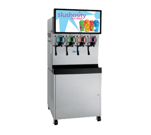 Frozen Carbonated Beverage Freezer, counter model, four flavor, (4) 7 qt. freezing cylinders, remote carbonation system, self-contained air cooled, indicator light/audible alarm, automatic defrost, power saver, flow control, electric viscosity controls, removable & cleanable air filter, LED backlit display, R404A, (4) 1/6 HP motor, NSF, cULus, (Go to the Taylor web site link to locate your distributor for pricing & warranty information)
