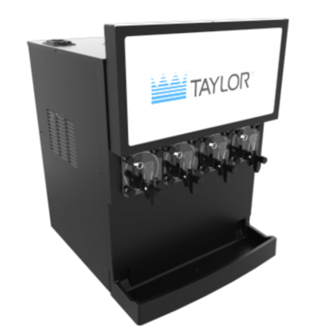 Four flavor frozen carbonated beverage freezer, counter model, air-cooled, self-contained, (4) 7 QT freezing cylinders, indicator lights/audible alarms, automatic defrost, power saver, NEWTON constant flow valve technology, air filter, lighted display, black stainless steel finish, R449A, (4) 1/6 HP beater motors, IOT capable, NSF and cULus listed. Visit the Taylor website link to locate your distributor for pricing and warranty information.