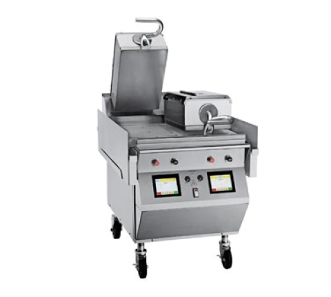 Crown® Series Electric Grill, floor unit, 2-sided, (2) upper platens, (2) separately controlled cooking zones, (3) independent heating elements, programmable microprocessor controls, automatic gapping, one touch menu selection, external USB port, casters, NSF, cULus listed (Go to the Taylor web site link to locate your distributor for pricing & warranty information)