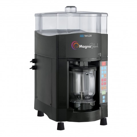 MagnaBlend® Frozen Beverage Blending Dispenser, counter model, 9-second blend time, 5 recipe buttons, 4 drink sizes, blends up to 2-16 oz. drinks per cycle, 13 lbs. ice hopper, customizable menu, quick connect liquid sweetener port, includes (2) BPA-free blending pitchers, NSF®, CE, cETLus (drain required) (Go to the Taylor web site link to locate your distributor for pricing & warranty information)