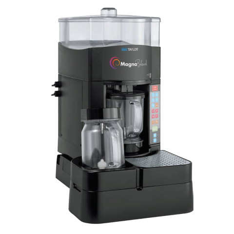 MagnaBlend® Frozen Beverage Blending Station, counter model, 9-second blend time, 5 recipe buttons, 4 drink sizes, blends up to 2-16 oz. drinks per cycle, 13 lbs. ice hopper, customizable menu, quick connect liquid sweetener port, includes (2) BPA-free blending pitchers, rinse station, NSF®, CE, cETLus (drain required) (Go to the Taylor web site link to locate your distributor for pricing & warranty information)
