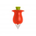 Hullster™ Tomato Corer, handheld, push button operation, tomato design, serrated stainless steel blades, plastic body, red/green (must be purchased in case quantities)