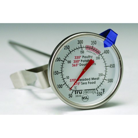 Deep Fry Thermometer, 1-3/4" dial, 50° to 550°F (50° to 285° C) temperature range, adjustable temperature indicator, 12" stainless steel stem with adjustable pan clip, NSF (must be purchased in case quantities)