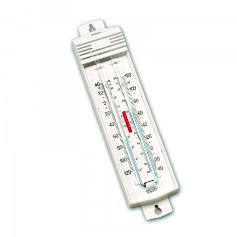 Maximum/Minimum Thermometer, indoor/outdoor, -40° to 120°F (-40° to 50° C) temperature range, Permacolor™ filled, push button and magnet reset, large easy-to-read face (case pack cannot be broken, must be purchased in case quantities)