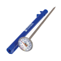 HACCP Food Safety Thermometer, dial, 0° to 220°F (-10° to 100°C) temperature range, 1" dial, with 5" stem, pocket sleeve with patented built-in calibration feature, shatterproof lens, stainless steel construction, color coded: blue (for fish), NSF (must be purchased in case quantity)