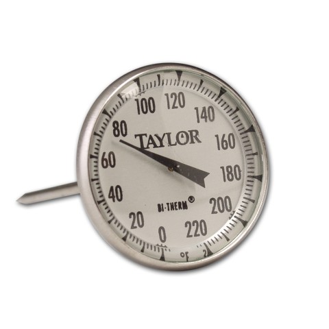 Meat Thermometer, instant read, 2" dial display, 0° to 220°F temperature range, glass crystal, 4" stainless steel stem, packed in individual carton (case pack can be broken)