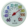 Indoor/Outdoor Dial Thermometer, 13-1/4" dial with ColorTrak design, -60° to 120°F (-50° to 50° C) temperature range, glossy white bezel frame, weather resistant, shatterproof (must be purchased in case quantities)