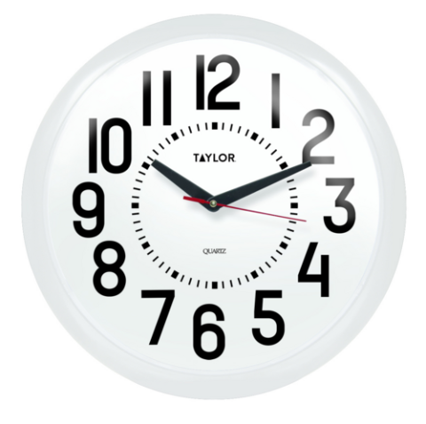 Patio Clock, 13-1/4" dia., big and bold style, in/out round dial clock, white bezel, all metal construction, requires (1) AA battery (not included) (must be purchased in case quantities)