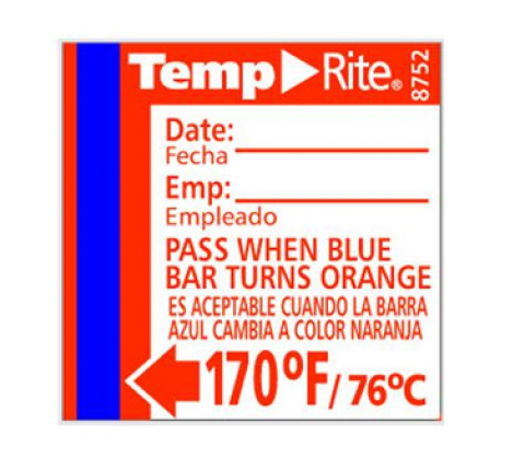 Temperature Sensor, TempRite® Stick-On Adhesive Dishwasher Rinse Labels, 170°F (76° C), +/-2°F accuracy (24 labels per pack) (must be purchased in case quantities)