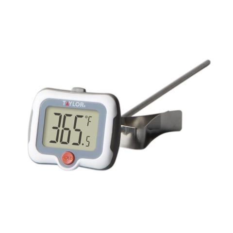 Candy/Deep Fry Thermometer, digital, adjustable/swivel head, -40° to 450°F (-40° to 230°C) temperature range, 1" readout, auto shut-off, 9" stainless steel stem with adjustable pan clip, LR44 battery (included) (must be purchased in case quantities)