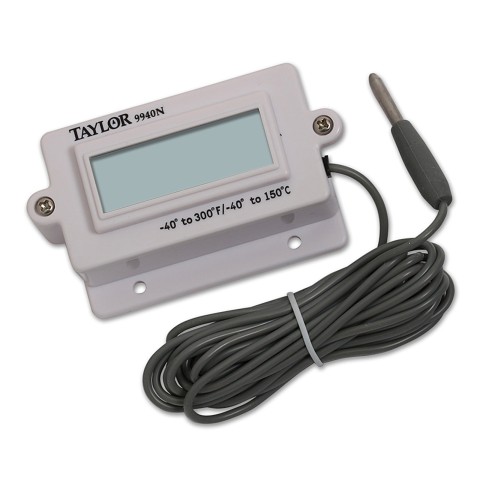 Thermometer, digital, panel mount, -40° to 300°F (-40° to 150° C) temperature range, flush or panel mount, waterproof housing & probe with 10 ft. cable for air & liquid immersion, 10 second update, uses (1) AAA battery (included) (must be purchased in case quantities)