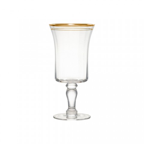 Water Goblet, 14 oz., 3-3/4" x 3-3/4" x 7-1/2", dishwasher safe (hand wash recommended), glass, gold band, Kate (sold in case pack ONLY)