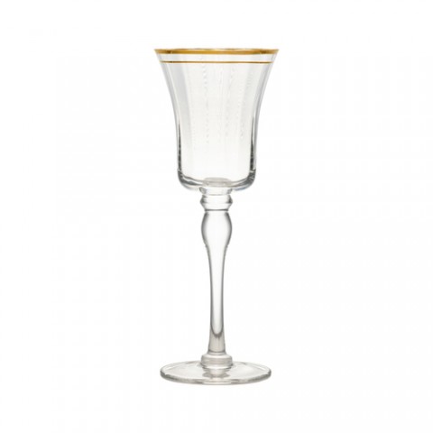 White Wine Glass, 9 oz., 3-3/4" x 3-3/4" x 8-3/4", dishwasher safe (hand wash recommended), glass, gold band, Kate (sold in case pack ONLY)