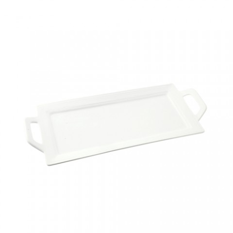 Platter, 13" x 6", rectangular, embossed, handled, oven/microwave/dishwasher safe, porcelain, white, Whittier Platters (sold in case pack ONLY) (Stocked)