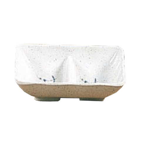 Divided Sauce Dish, 1 oz., 3-5/8" x 2-3/4", 2-wells, break-resistant, dishwasher safe, BPA free, melamine, Blue Bamboo, NSF