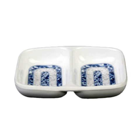 Twin Sauce Dish, 2 oz., 3-3/8" x 2-3/4", 2-wells, rectangular, break-resistant, dishwasher safe, BPA free, melamine, Blue Dragon, NSF (2 dozen minimum order)
