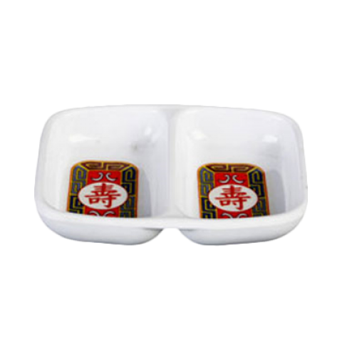 Twin Sauce Dish, 2 oz., 3-3/8" x 2-3/4", 2-wells, rectangular, break-resistant, dishwasher safe, melamine, longevity, BPA free, NSF (2 dozen minimum order)