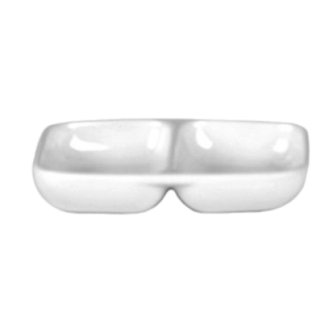 Twin Sauce Dish, 2 oz., 3-3/8" x 2-3/4", 2-wells, rectangular, break-resistant, dishwasher safe, BPA free, melamine, Imperial White, NSF (2 dozen minimum order)
