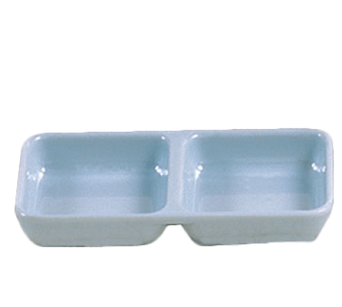 Twin Sauce Dish, 4 oz., 6" x 3", 2-wells, rectangular, break-resistant, dishwasher safe, BPA free, melamine, Blue Jade, NSF