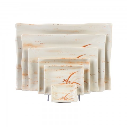 Asian Plate, 12 oz., 8-1/2" x 5-3/4", rectangular, break-resistant, dishwasher safe, BPA free, melamine, Gold Orchid, NSF